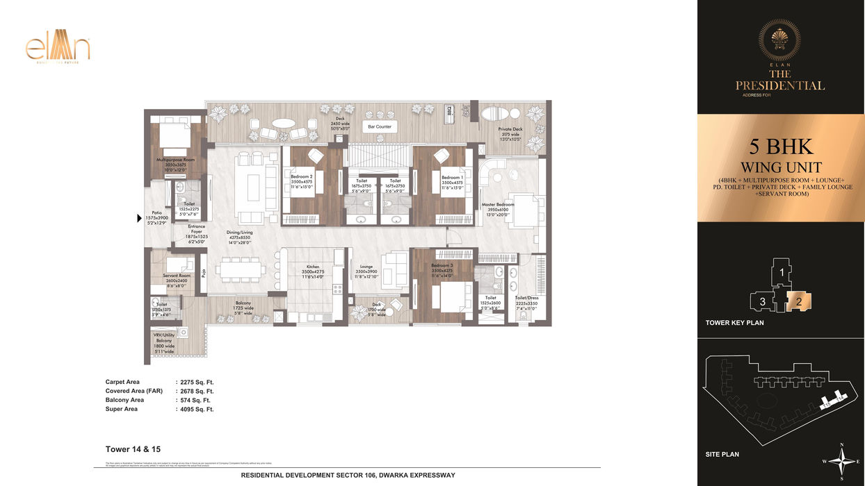 Disclaimer: All data, pictures, and representations, plans, drawings, or agnayi are merely artistic representations or an architect's impression and are not to scale. The Show Apartment's furnishings and interior design are only representative and illustrative. Land and areas outside the project's boundaries and perimeter are merely indicative; no rights are established there. Nothing in this document is meant to be a legally binding offer or a component of any contract. Recipients and viewers are asked to confirm all the information, including common locations and landscapes, and are encouraged to use caution when relying on the information provided, amenities and facilities, services, payment plans and other relevant terms independently with the Promoter, have a thorough understanding of the same, and take appropriate advice prior to concluding any decision for buying in the Project. Registration No. GGM/626/358/2022/101 available at https://haryanarera.gov.in. For more information, please visit - https://www.agnayi.com/elan-the-presidential. Project address - Sector 106, Dwarka Expressway, Gurugram. Terms and conditions apply.